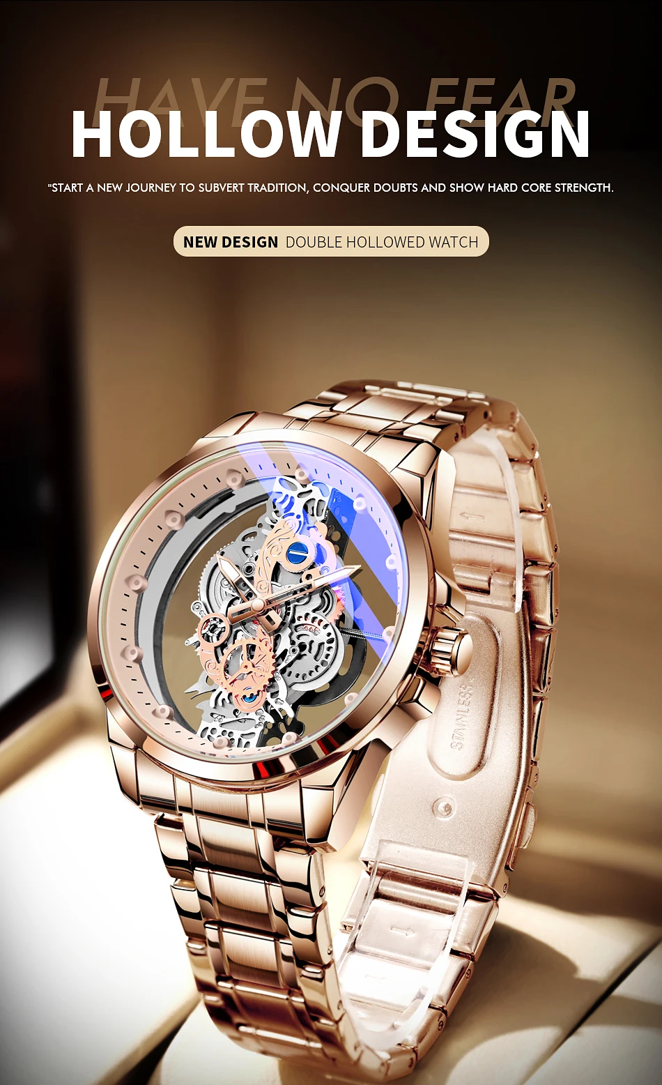 Hot Trendy Fashion Wholesale Men Golden Skeleton Automatic Quartz Wrist Watches Luxury 2024